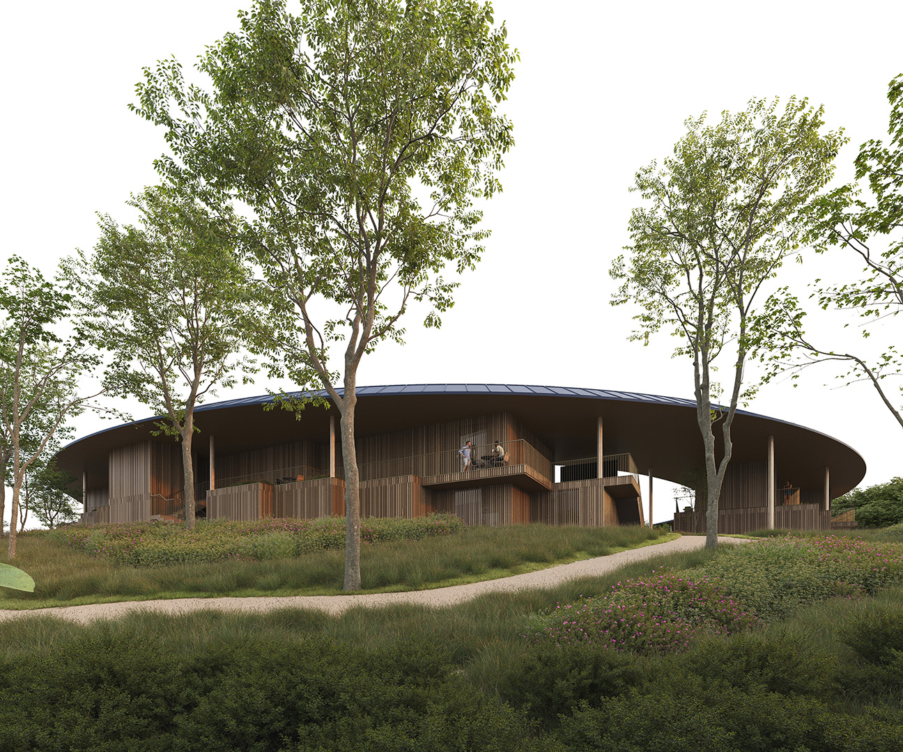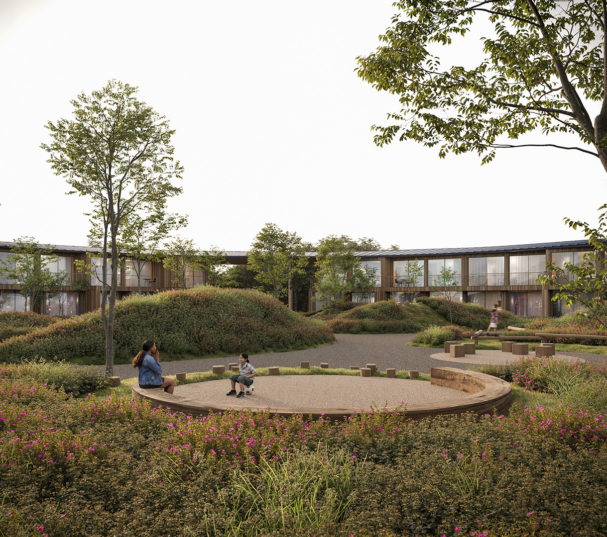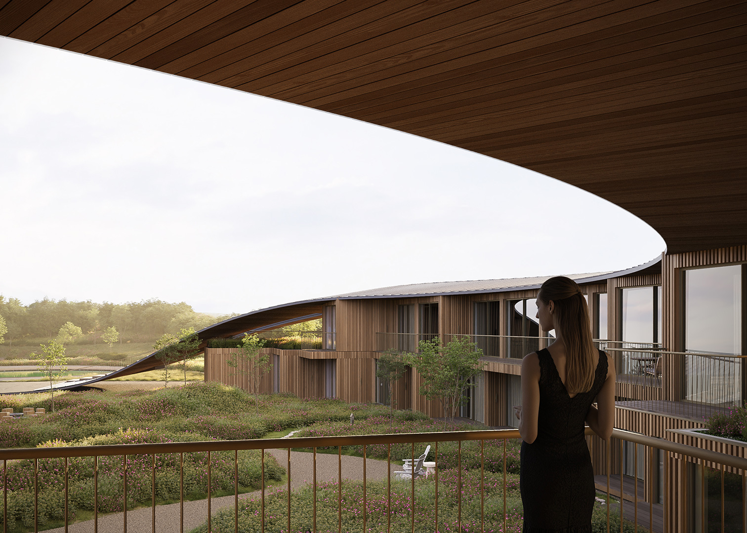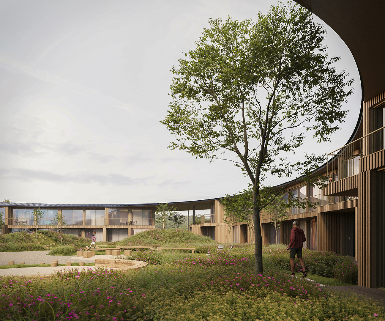 The project interweaves a hotel, a multi-purpose building and a spa, each housed in its own distinct structure.The design revolves around a central plaza, with each room enjoying a framed view of the landscape.A versatile multi-purpose space adapts to accommodate a wide range of events.