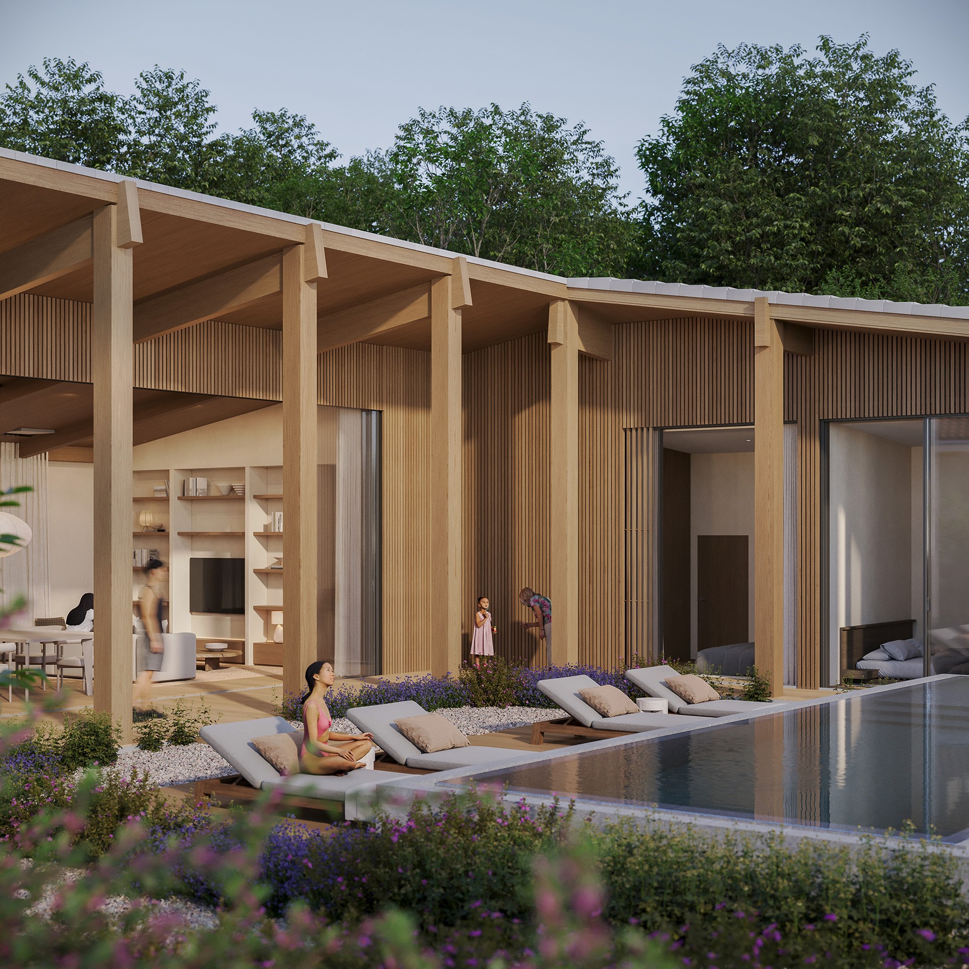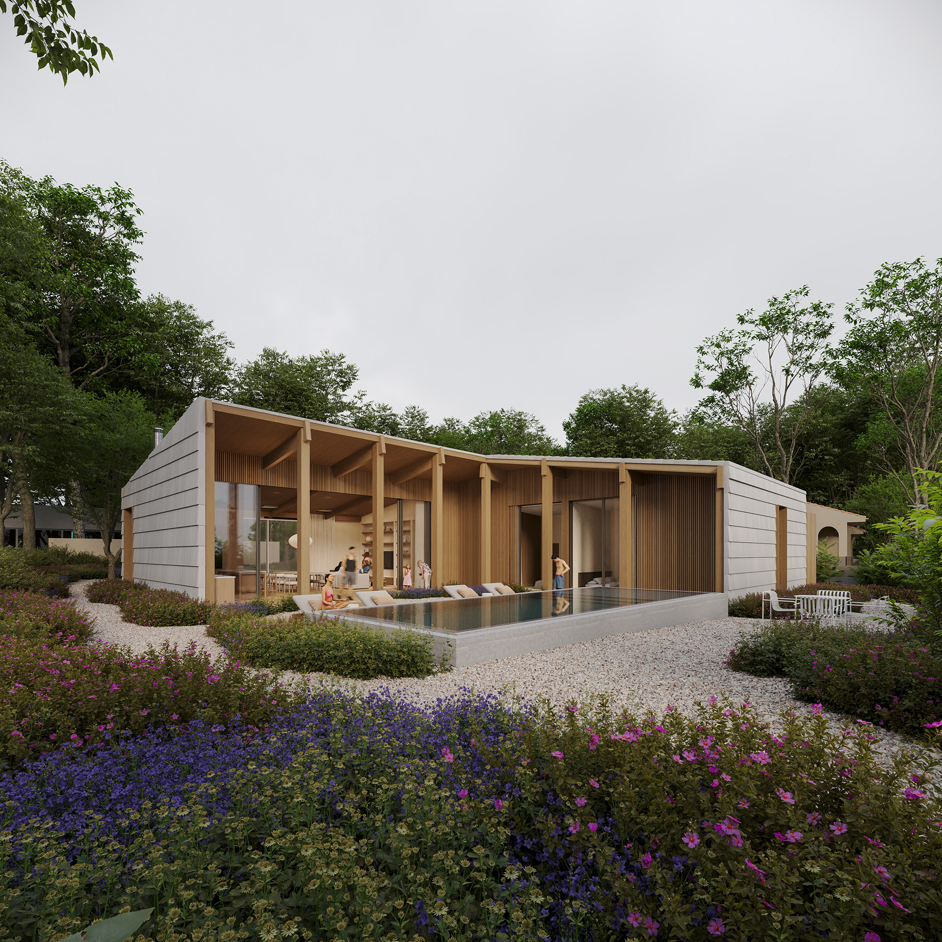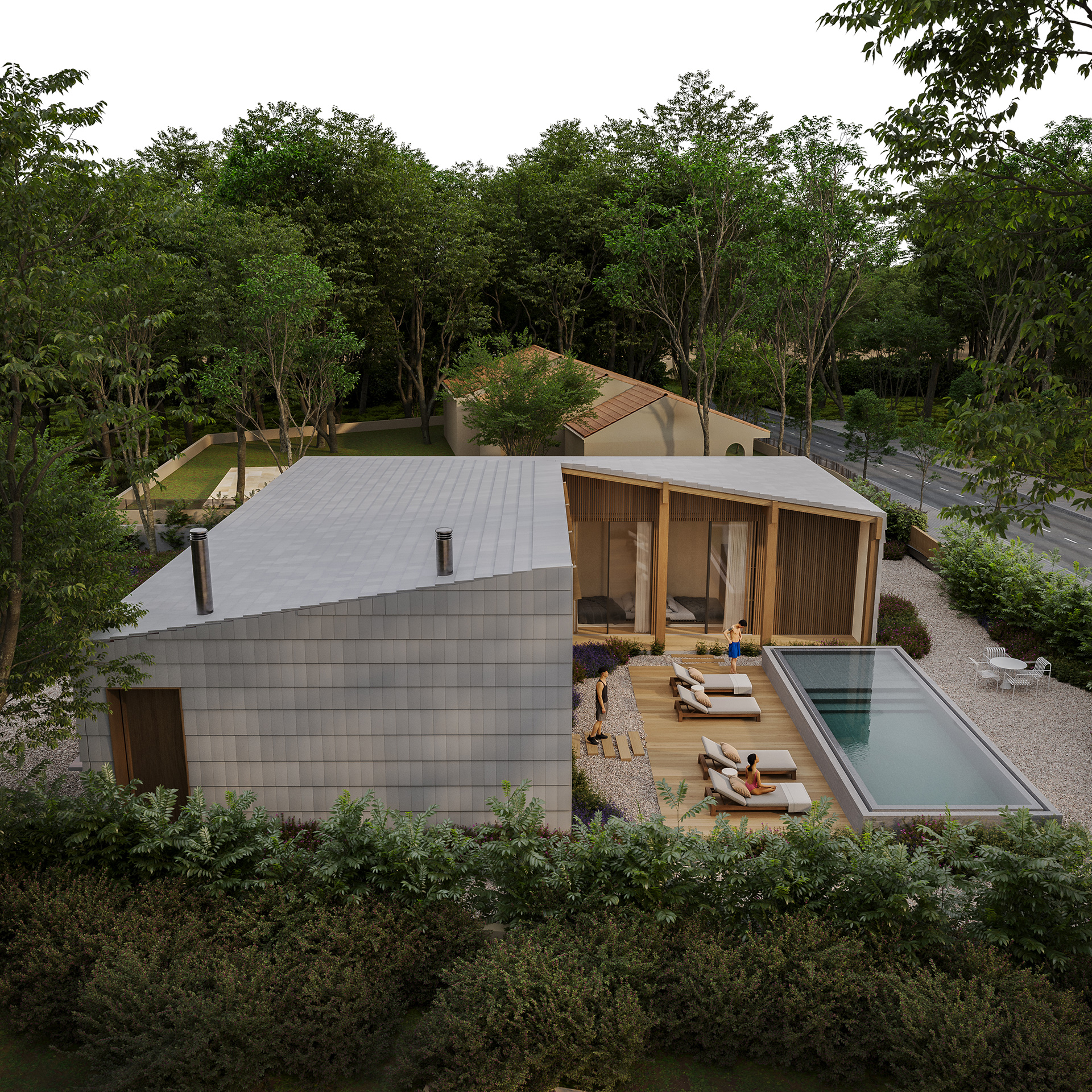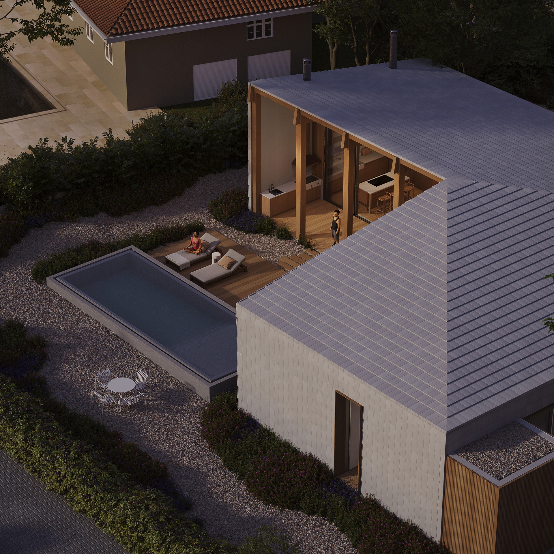 O paisagismo abraça este conceito e oferece privacidade com os vizinhos.