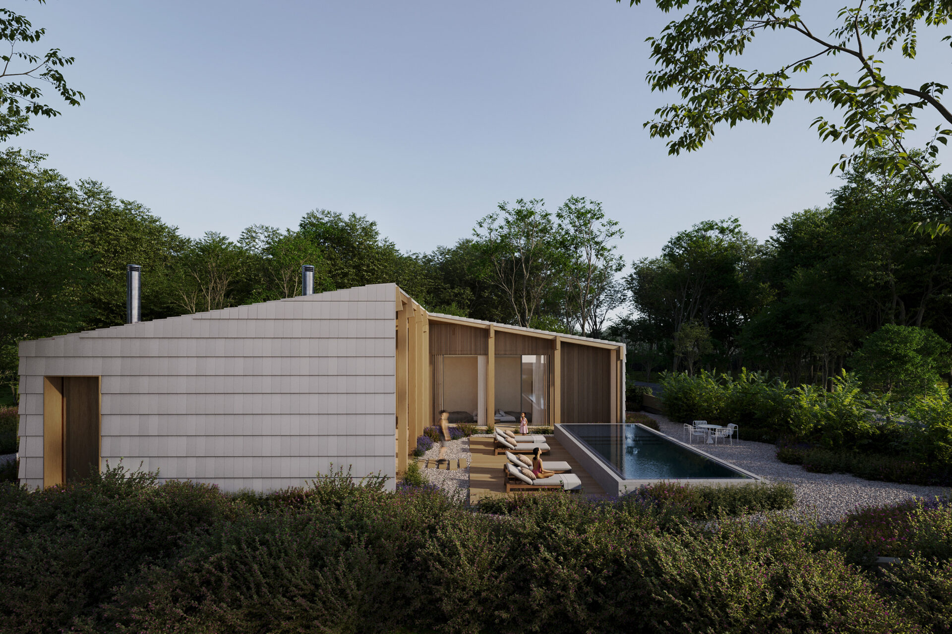 A Casa Sol Tróia propõe uma habitação unifamiliar desenvolvida em estrutura de madeira com um design que reinterpreta a tipologia de uma casa de praia.